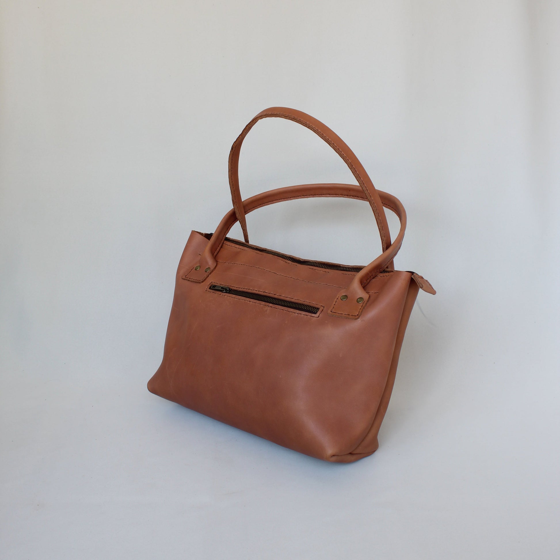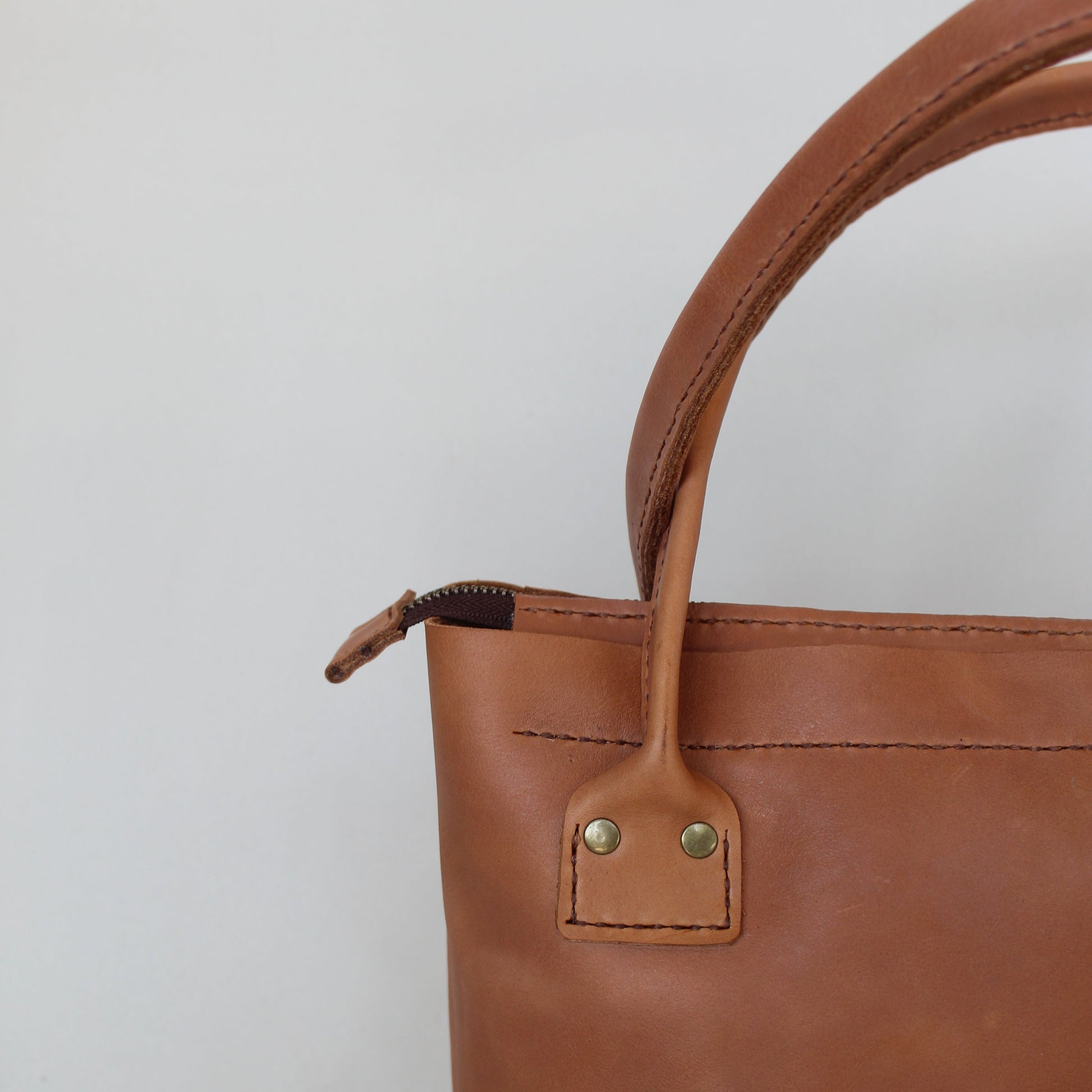 The material we use to create it is a hybrid of vegetable-tanned and chrome-tanned leather. Because leather is a natural material, colour variation and marks such as scars and faint scratches may feature on our products, but imperfection gives our handbags their unique rustic appearance.
