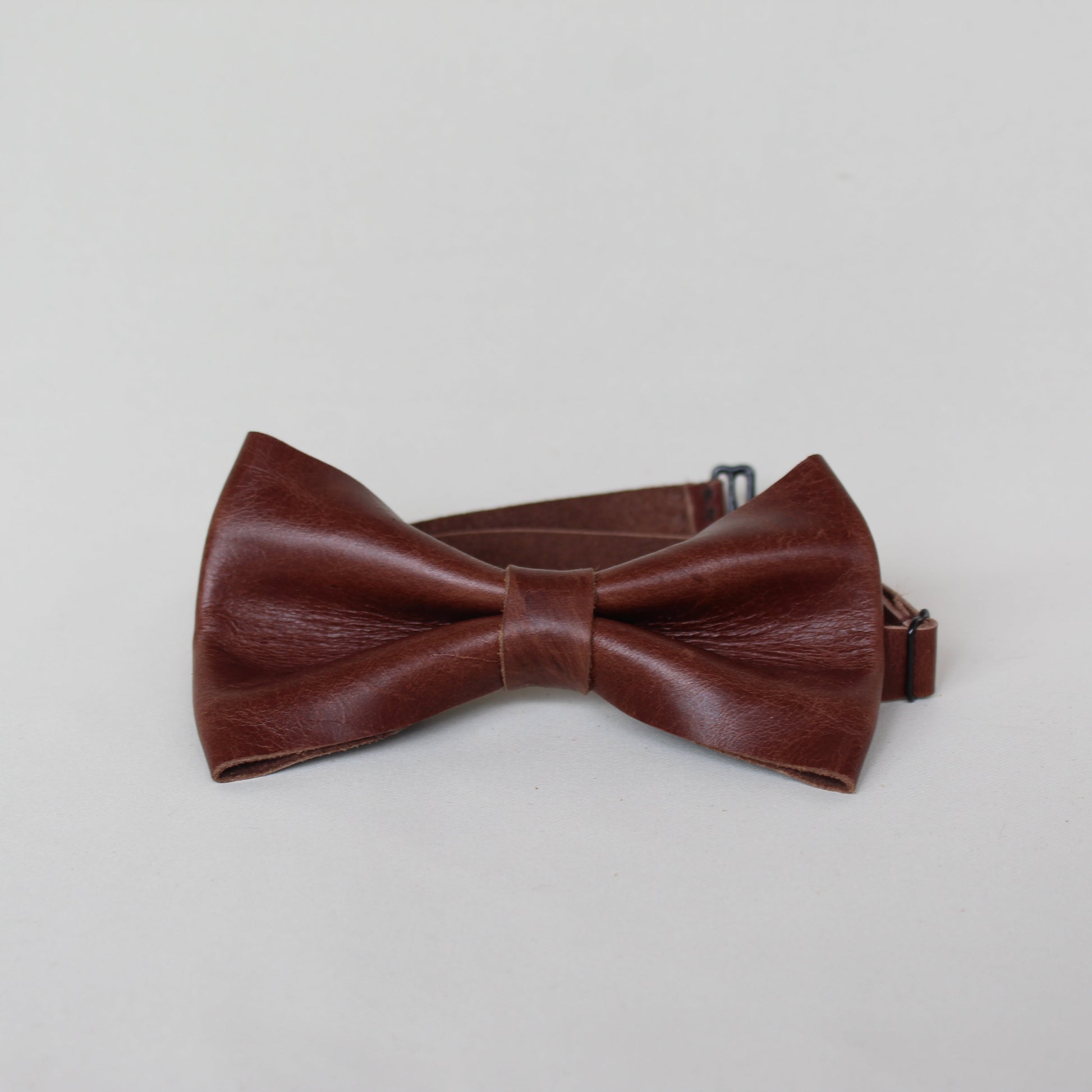 The material we use to create it is a hybrid of vegetable-tanned and chrome-tanned leather. Because leather is a natural material, colour variation and marks such as faint scars and scratches will often feature on our products. Every imperfection gives our bowties their unique rustic appearance.