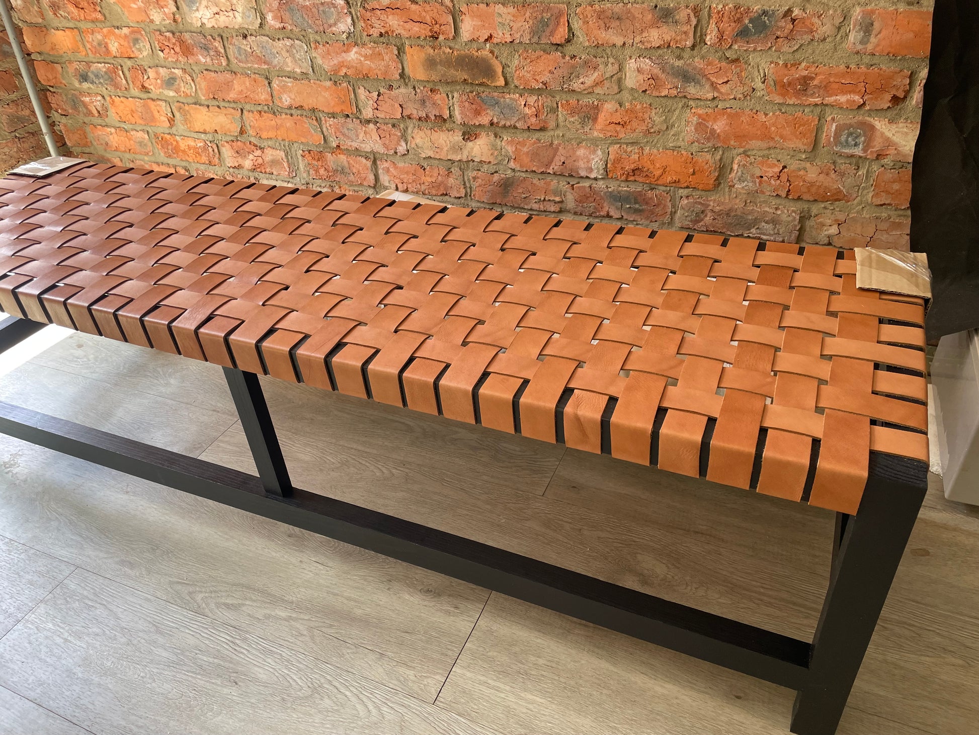 Love my woven leather bench, fills up the space perfectly and strong enough for intended purpose.